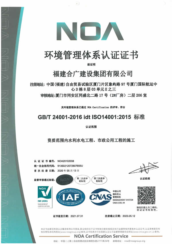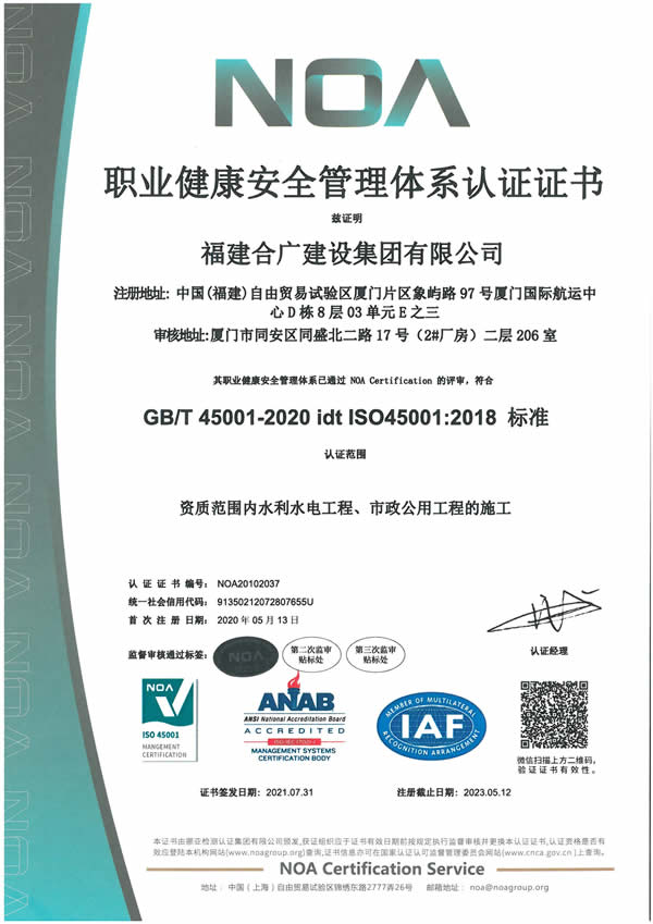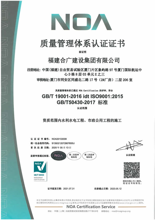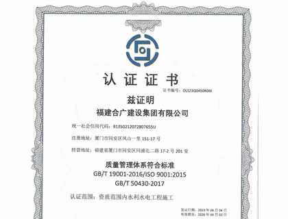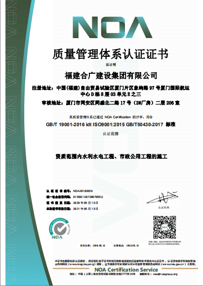 福建合廣建設(shè)集團(tuán)有限公司,注冊(cè)資本5188萬(wàn)元人民幣,公司位于廈門(mén)市同安區(qū)鳳山一里151-17號(hào)。本公司成立于2013年,公司具備市政公用工程、水利水電工程、房屋建筑工程、公路工程、園林綠化等多專(zhuān)業(yè)施工資質(zhì)。企業(yè)從業(yè)人員100多人,各類(lèi)專(zhuān)業(yè)技術(shù)人員70多人,其中高級(jí)職稱(chēng)8人,中級(jí)職稱(chēng)40多人,一級(jí)建造師6人,二級(jí)建造師15多人。