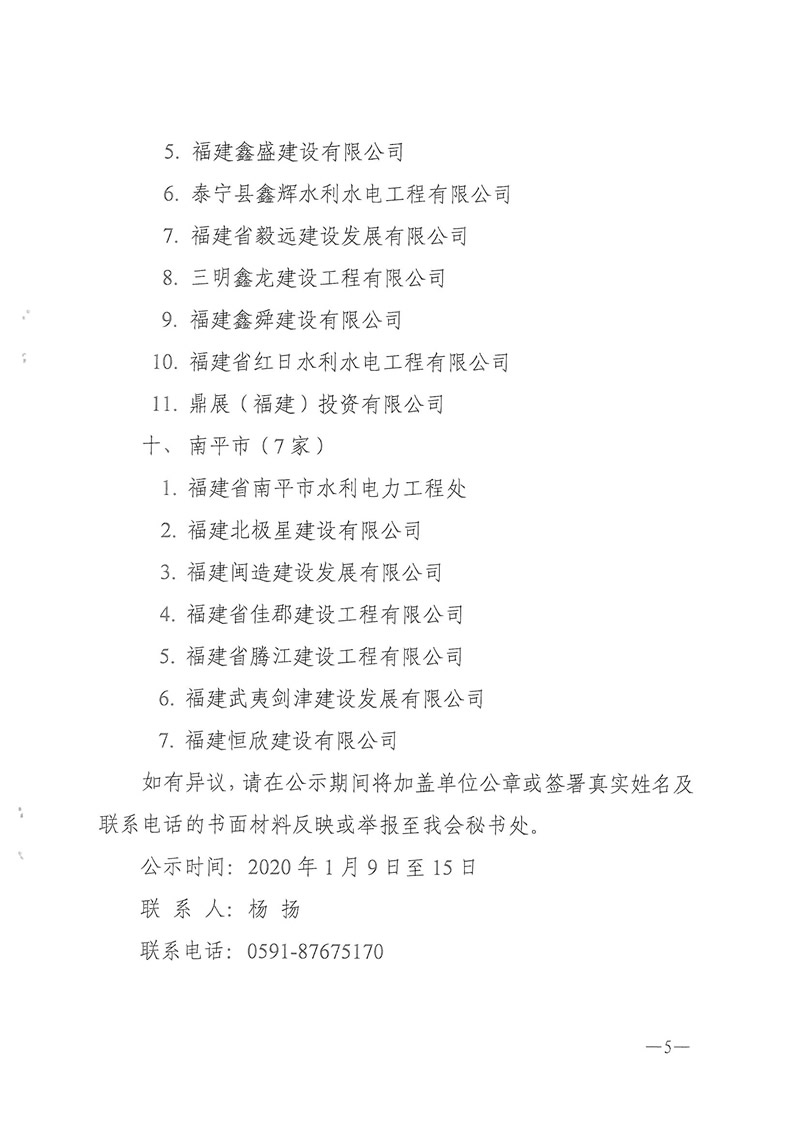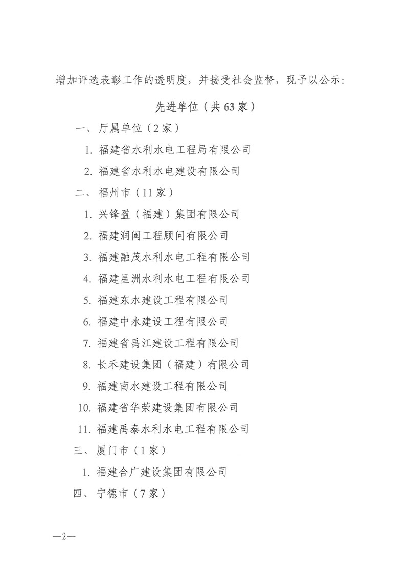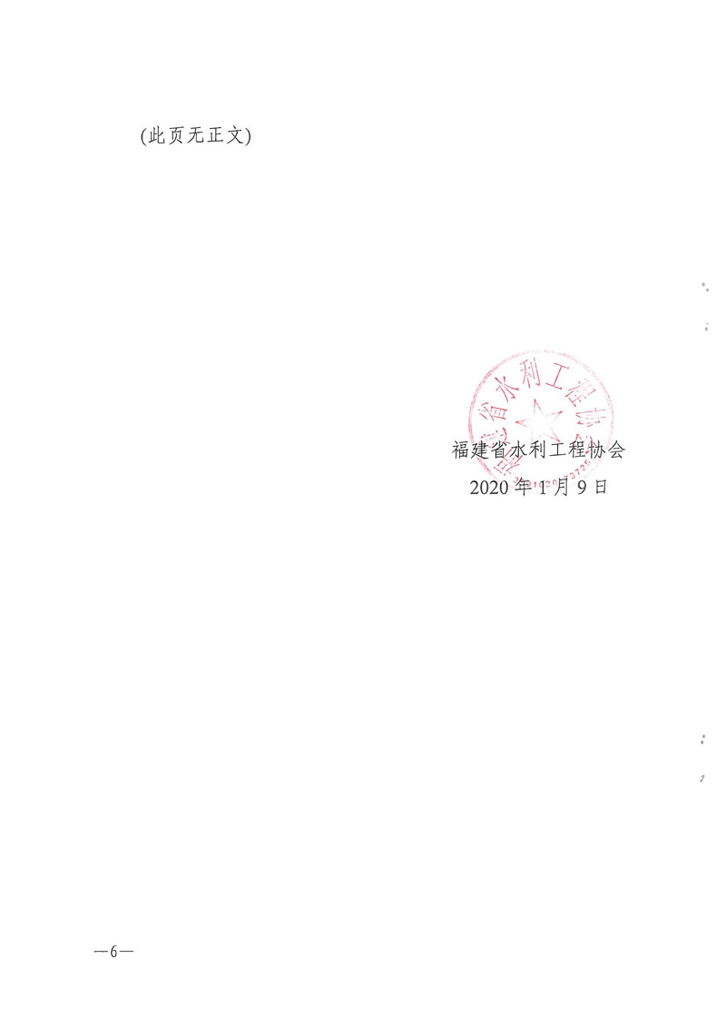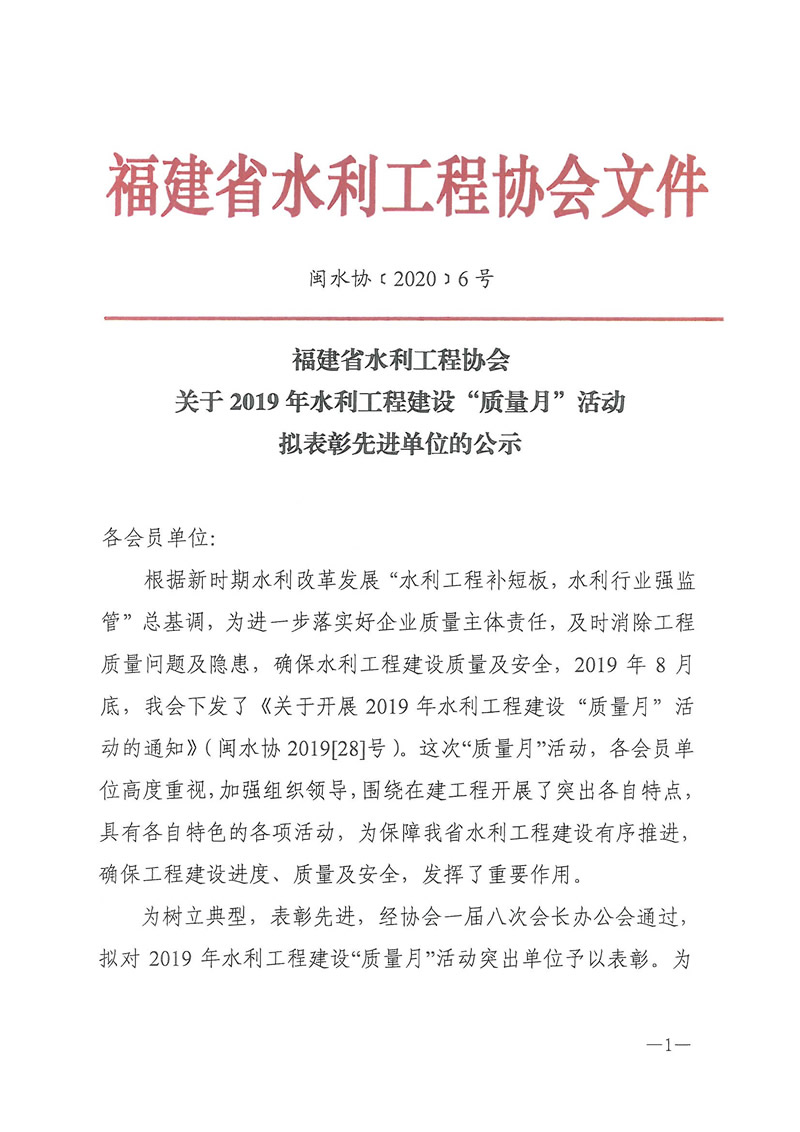 閩水協(xié)【2020】6號 福建省水利工程協(xié)會關于2019年水利工程建設”質量月“活動擬表彰先進單位的公示