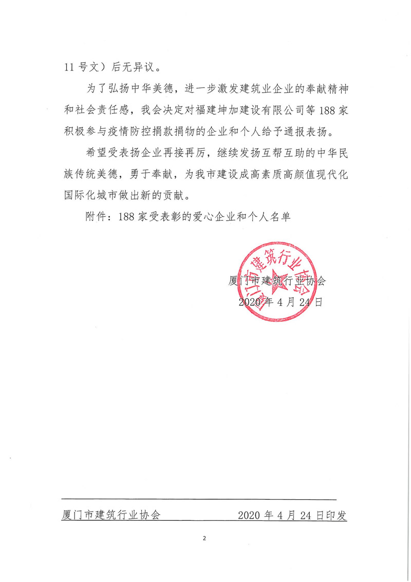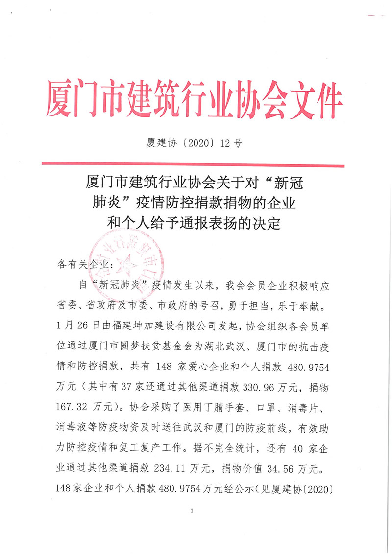關于對“新冠肺炎”疫情防控捐款捐物的企業(yè)和個人給予通報表揚的決定