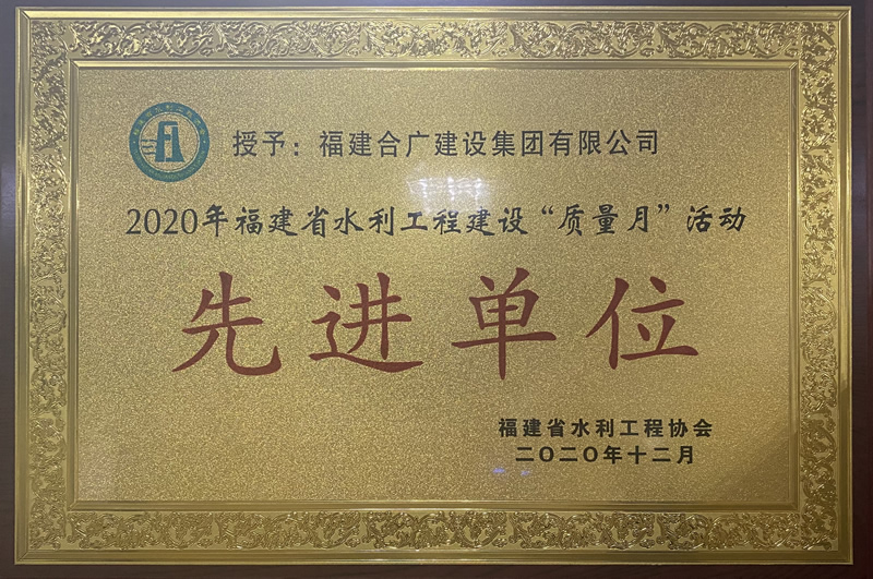 福建合廣建設(shè)集團(tuán)有限公司2020年費(fèi)水利工程質(zhì)量月榮譽(yù)證書