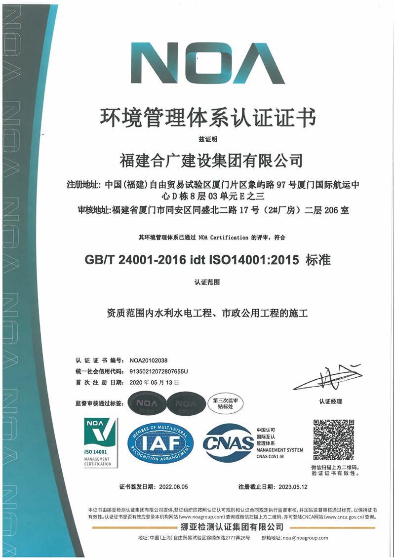 2022環(huán)境管理體系認(rèn)證證書